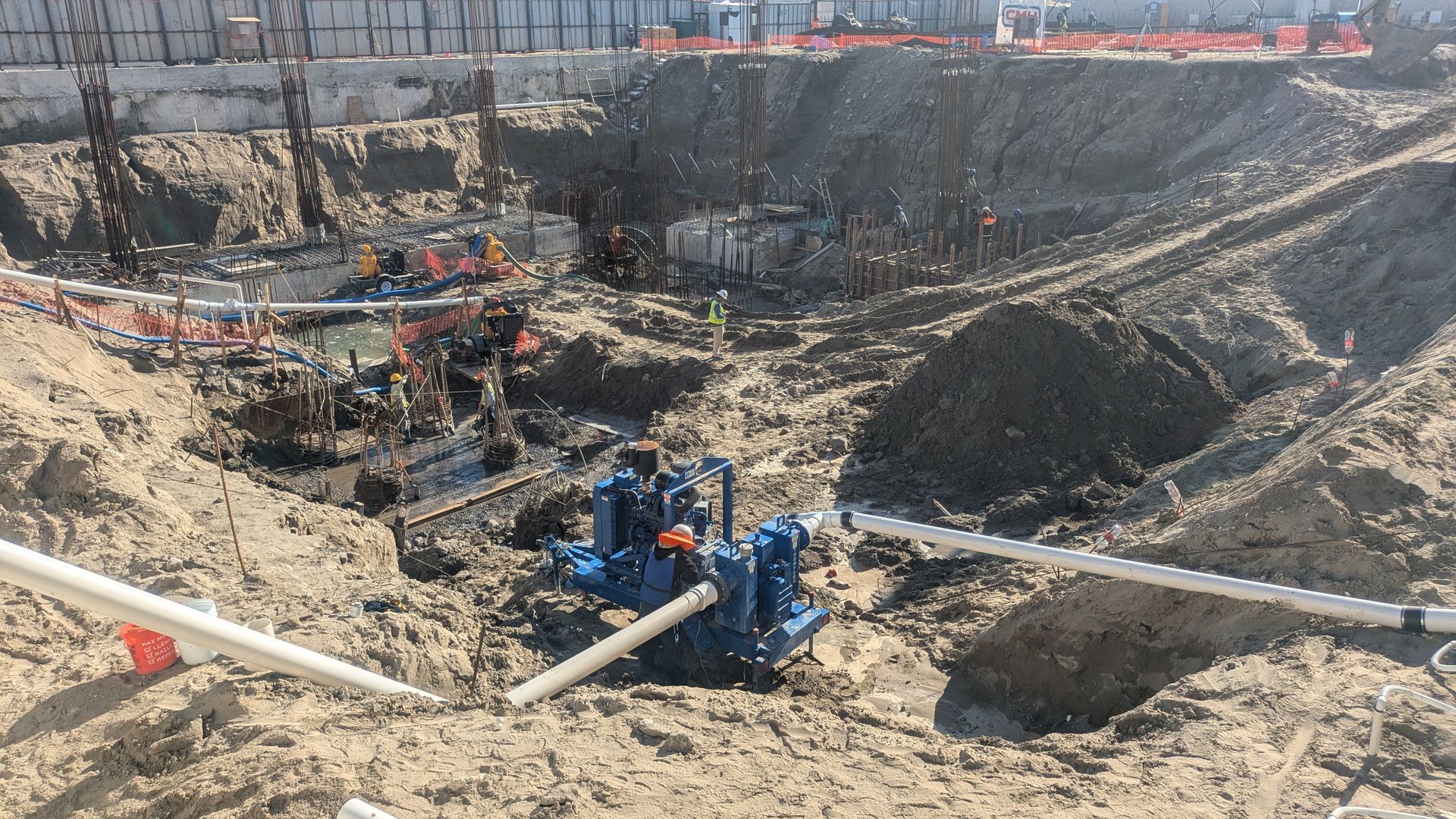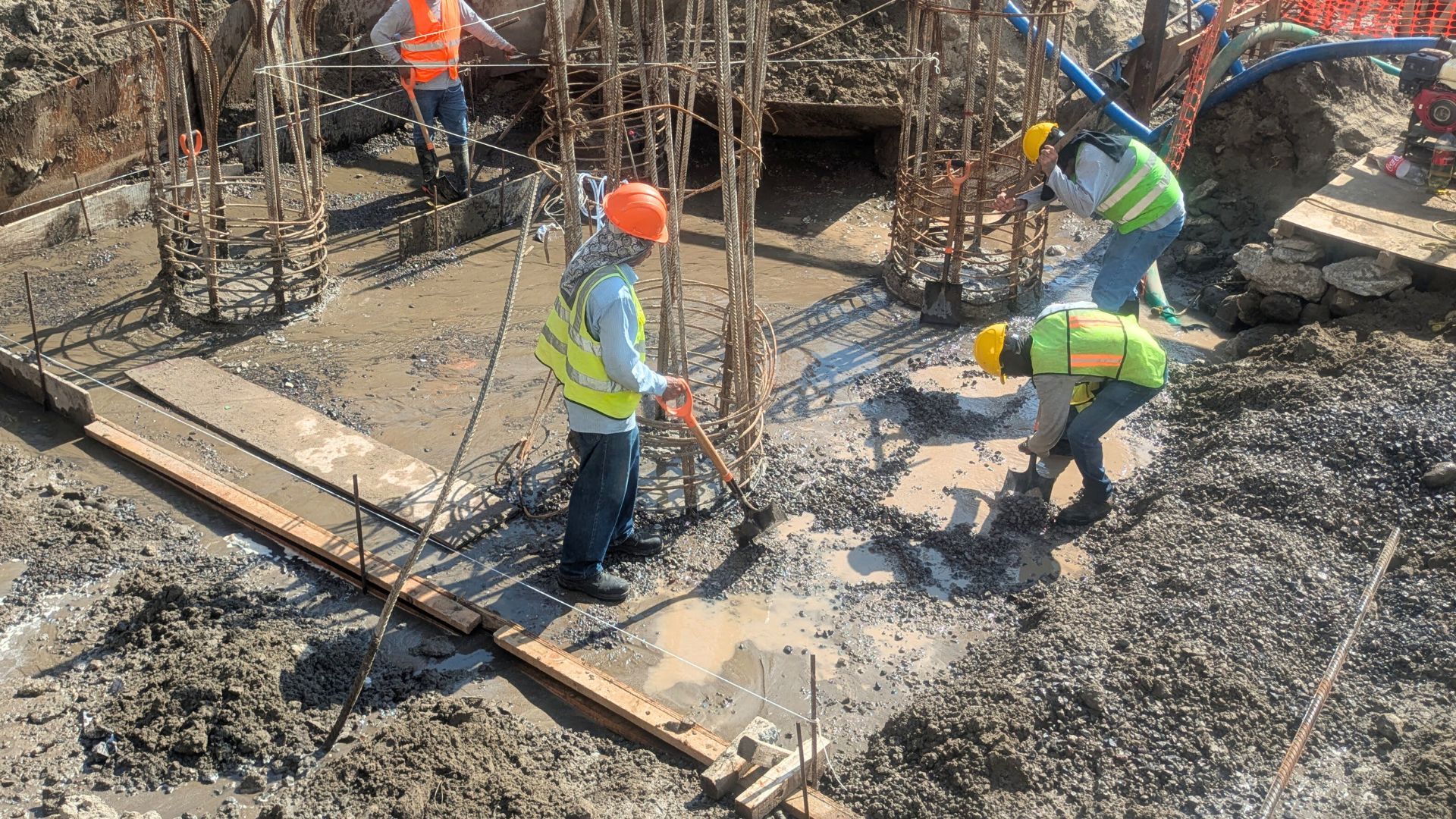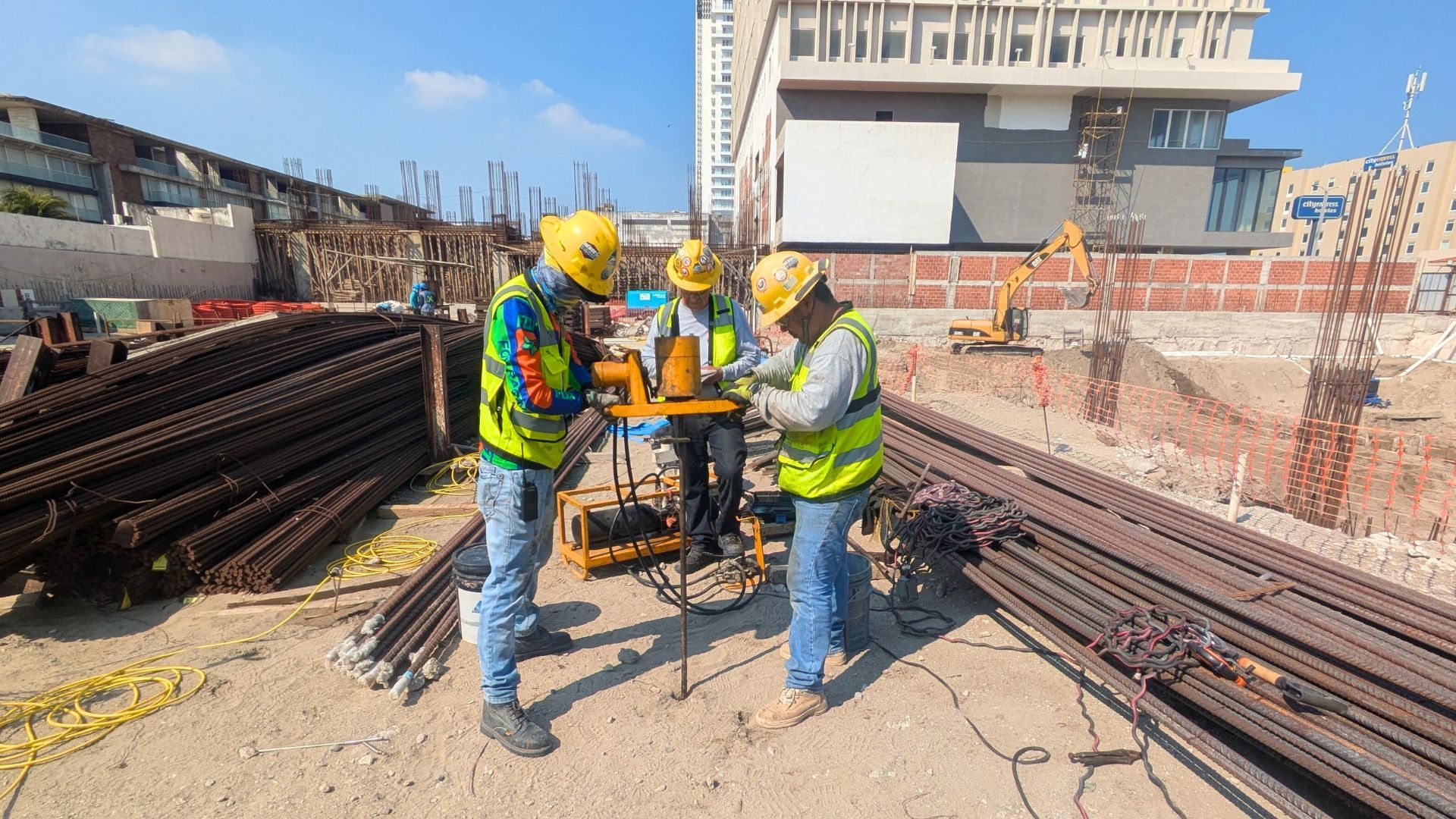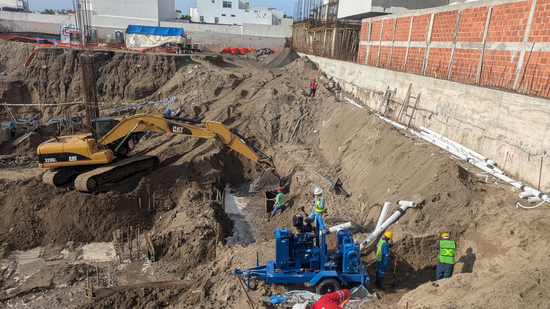 De manera complementaria, se ejecutaron estudios y trabajos especializados en el terreno orientados al control y abatimiento del nivel freático. Estas acciones permiten conservar condiciones óptimas durante la excavación y aportan mayor estabilidad al desarrollo continuo del proyecto.