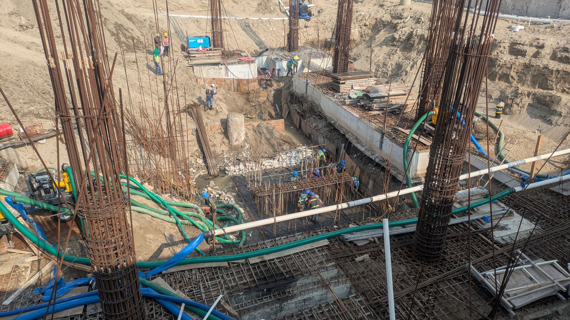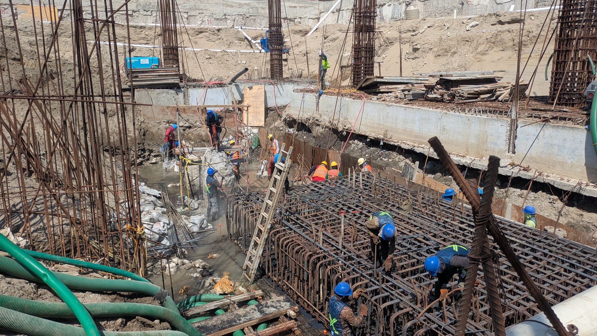 Estas actividades implicaron un trabajo coordinado de control del nivel freático, habilitado de acero, cimbrado y colado de concreto, asegurando que cada elemento cumpla con las especificaciones estructurales establecidas.