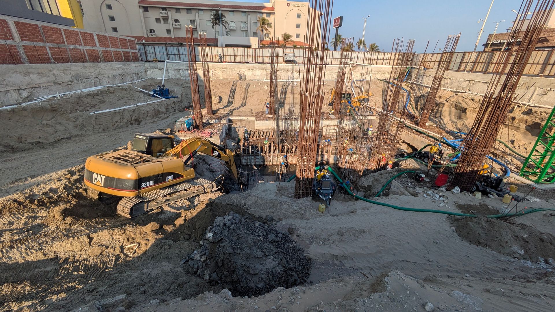 Un avance relevante durante este mes fue el inicio de los primeros colados de muros en la zona correspondiente a los elevadores, lo que representa el comienzo del crecimiento vertical del edificio en áreas clave.